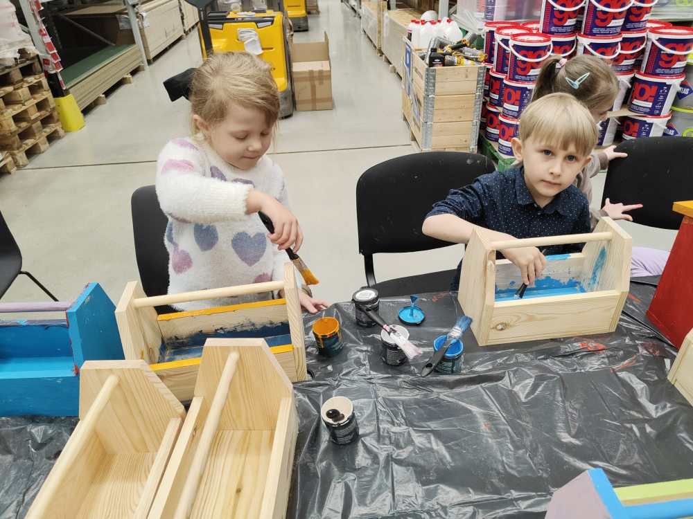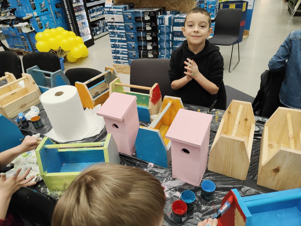 Galeria 2025/2026 « Powrót do galeriiStarszaki podczas kreatywnych warsztatów "Majsterkowo" w Castorama 🖌️🙃